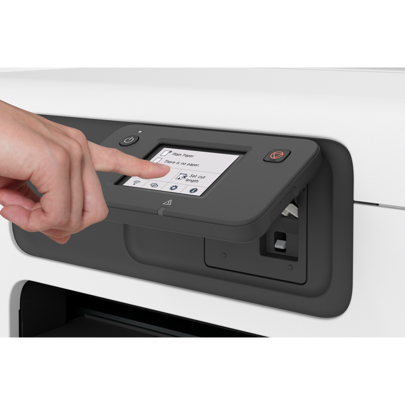 Držač role bez osovine i optimizirani postupak postavljanja role olakšavaju instalaciju, dok nagibna upravljačka ploča osigurava bolji pregled informacija na različitim visinama. Ugrađeni automatski ulagač listova omogućuje ispisivanje između role i pojedinačnih listova bez intervencije, omogućujući razne primjene prihvaćanjem različitih veličina pojedinačnih listova.