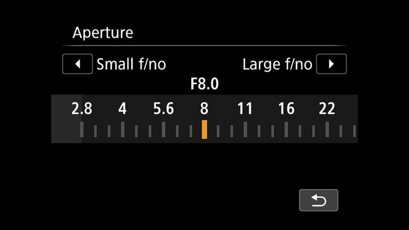 Choosing an aperture somewhere in the middle of the range, such as f/8, often gives the best compromise of depth of field and shutter speed. You can take control of aperture in Aperture Priority (Av) and Manual (M) exposure modes.
